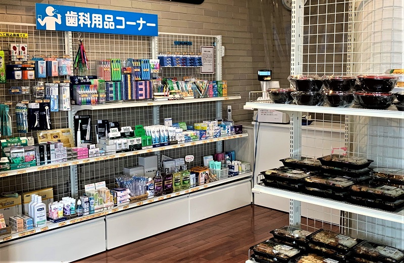 歯科衛生材料、弁当、食料品、飲料の販売。生花の取次ぎ。